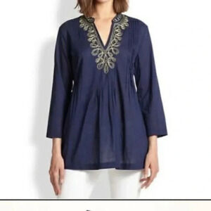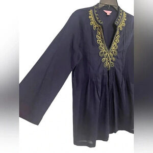 Lilly Pulitzer Sarasota Tunic True Navy Gold BEADED Top Small S