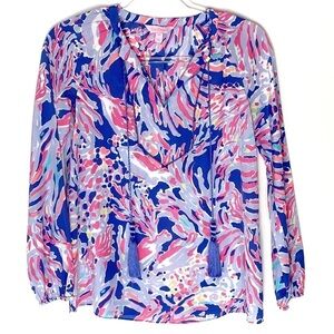 Lilly Pulitzer Saria silk tasseled top Iris Blue