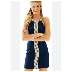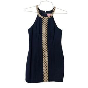 Lilly Pulitzer Sasha Shift Dress Navy Blue Gold Lace Halter Racerback Size 2