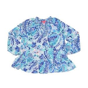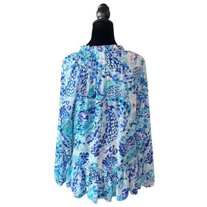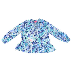 Lilly Pulitzer Savanna Turquoise Oasis Wave After Wave Ruffle Top Women small