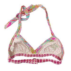 Lilly Pulitzer Scuba to Cuba Bikini Top Pink & Blue Tropical Beach Size Small