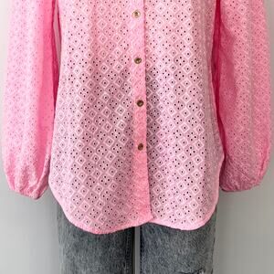 Lilly Pulitzer Sea Breeze Eyelet Button Down Shirt Top Pink Blossom | L NWT