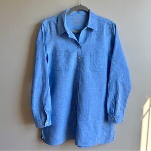 The Sea View Cover-Up is a button down style with long sleeves and an easy fit. Light and airy in machine washable Lagoon Linen that's made from natural European-grown fibers, it will get softer and more luxurious with every wash and wear.