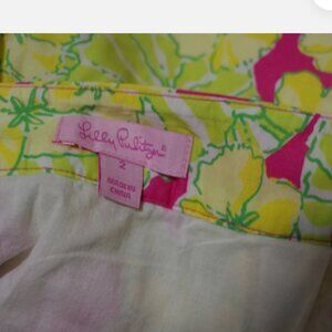 Lilly Pulitzer Cotton Multicolored Pink Green Floral Pockets Mini Skirt Size:2