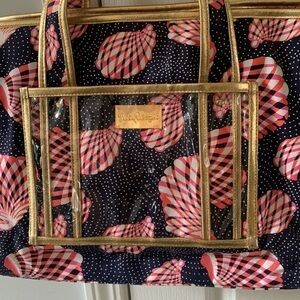 Lilly Pulitzer Seashell Print Tote navy pink resort bag beach vacation travel