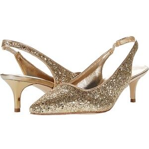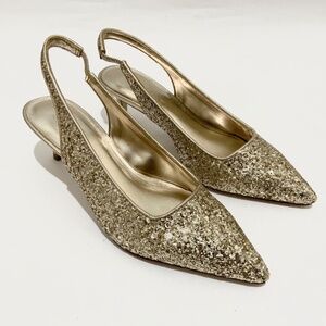 Lilly Pulitzer Shaina Slingback Gold Glitter Pump Pointed Toe Kitten Heel Shoe