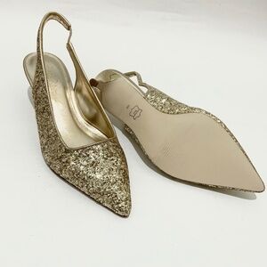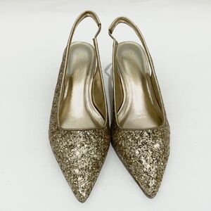 Lilly Pulitzer Shaina Slingback Gold Glitter Pump Pointed Toe Kitten Heel Shoe 6