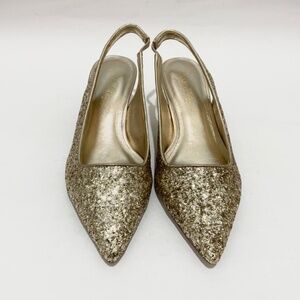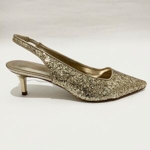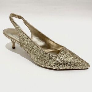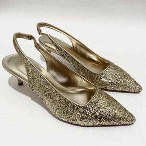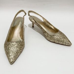 Lilly Pulitzer Shaina Slingback Gold Glitter Pump Pointed Toe Kitten Heel Shoe 8