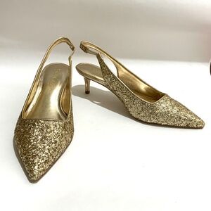 Lilly Pulitzer Shaina Slingback Gold Glitter Pumps Pointed Toe Kitten Heel Shoes