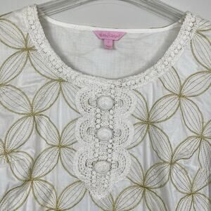 Lilly Pulitzer Shannon Gold Tunic Top Size Small Ivory Gold Embroidered Tropical