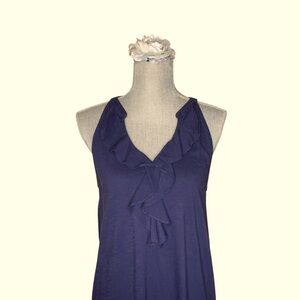 Keywords: Lilly Pulitzer dress, Shay halter dress, navy shift dress, preppy summer dress, ruffle neckline, resort wear, Lilly Pulitzer size Medium , vacation dress, classic navy dress, brunch outfit.