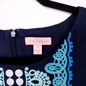 Lilly Pulitzer Sheath Dress Size 0 Embroidered Front Fully Lined Sleeveless