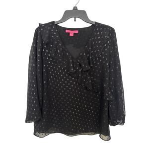 Lilly Pulitzer Sheer Silk Metallic Black Top Size Small Whimsigoth Dark Fairy Grunge Dark Romance Gothic Business