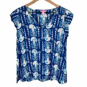 Jellyfish ikat pattern blouse. Resort Wear/Preppy Beachwear