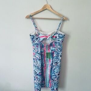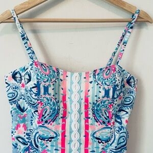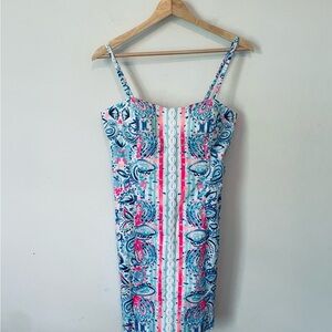Lilly Pulitzer Shelli Stretch Dress Blue Pink Spaghetti Strap Mini Dress