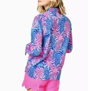 Lilly Pulitzer Sherida Top in Borealis Blue Tropic Down Low size Large NWT