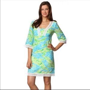 Lilly Pulitzer Sherman Shorely Blue Seashell Swirl Shift Dress