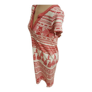 Lilly Pulitzer dress in Classic White Shimmy Shell print. Color is a pinkish/coral and cream.