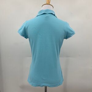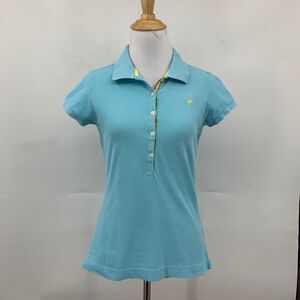 Lilly Pulitzer Shirt Womens S Small Aqua Polo Stretch Slit Hem Cap Sleeve *READ