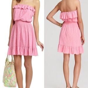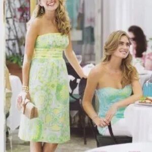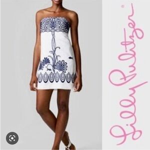 Lilly Pulitzer Shorely Blue Tossing the Line Beaded Silk Blend Langley Strapless Dress