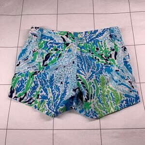 Lilly Pulitzer Shorts Womens 0 Blue Green Let’s Cha Cha Preppy Sea Monogram