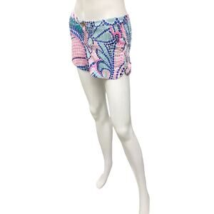 Lilly Pulitzer Shorts Women’s Size 0 Mosaic Print Gold Tone Button Blue And Pink