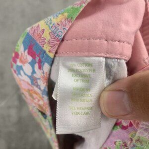 The product is a pair of Lilly Pulitzer women's shorts in size 2, featuring a pop-up design in a multicolor state-themed print. These casual knit shorts have a chino style and a 5" inseam, perfect for a laid-back and stylish look.
