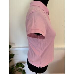 Add a pop of color to your wardrobe with this vintage Lilly Pulitzer polo shirt. The shirt features a classic collared neckline and a button-up closure, making it perfect for both casual and dressy occasions. The short-sleeved shirt is made of a stretchy knit fabric that includes spandex and cotton, ensuring both comfort and a flattering fit. The pink color is perfect for summer, and the solid pattern makes it easy to pair with a variety of bottoms. The shirt is machine washable, making it easy to care for.