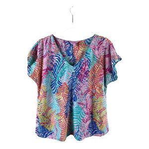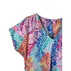 Lilly Pulitzer Silk Asher Short Sleeve Blouse in Electric Feel Sz Small Colorful