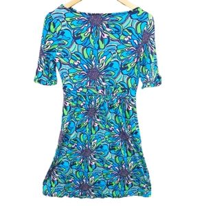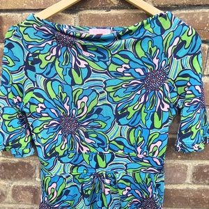 Lilly Pulitzer Silk Floral Print3/4 Sleeve Dress Blue Green Pink Sz S