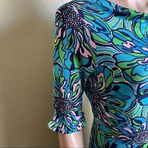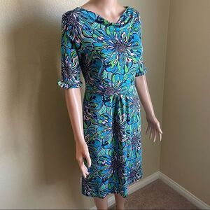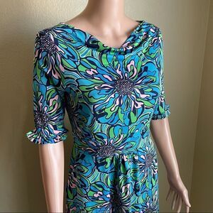 Lilly Pulitzer Silk Floral Print 3/4 Sleeve Dress Blue Green Pink Size Small