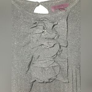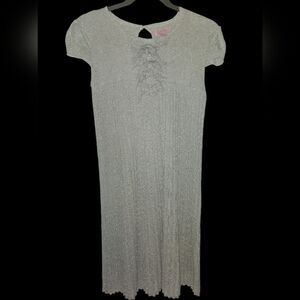Lilly Pulitzer Silver Metallic Sillk Blend Pleat Sweater Dress Size Small