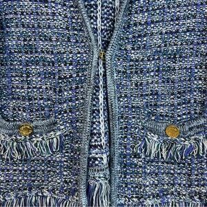 Lilly Pulitzer Simona Blue Oyster Day Navy Exotic Tweed Cardigan/Jacket XXS