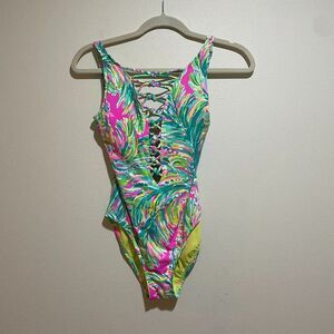 Lilly Pulitzer Size 0 Isle Lattice One Piece Swimsuit Swim Suit Shady Lady Palm
