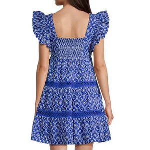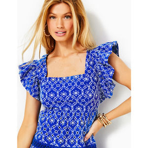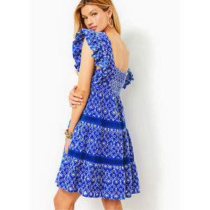 Lilly Pulitzer Size 14 DRESS Morrie Ruffle Sleeve Eyelet Smock Crochet Large NEW