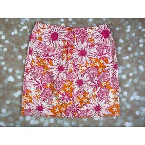 Lilly Pulitzer Size 2 White Label Floral Skirt Orange Pink Zip Back