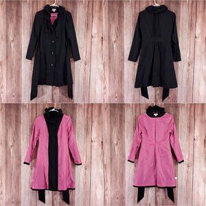 Lilly Pulitzer Size 4 Kelli Black Long Belted Trench Coat Jacket Ruffles Collar