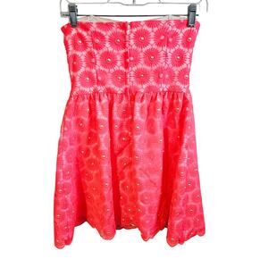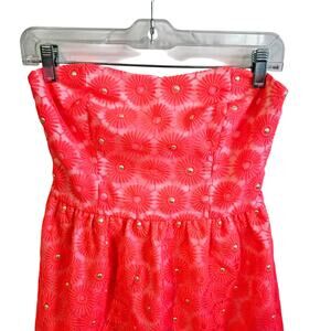 Lilly Pulitzer Size 4 Strapless Mini Dress Coral Red Embroidered Pinwheel Floral