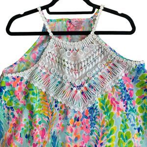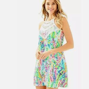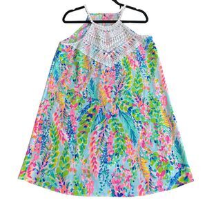 Lilly Pulitzer Size 6 Catch The Wave Embroidered Shift Dress Pink Green Tropical