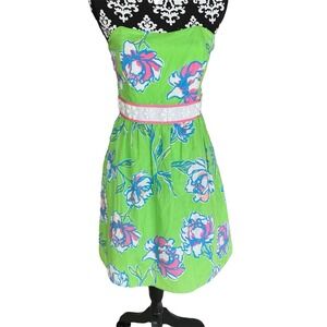 Lilly Pulitzer Size 6 Langley Strapless Beaded Floral Dress Green pink Silk