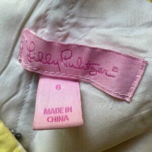 Lilly Pulitzer Size 6 Yellow & White Floral Swiss Dot Cotton Strapless Dress