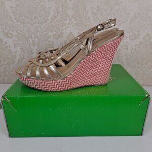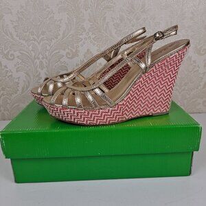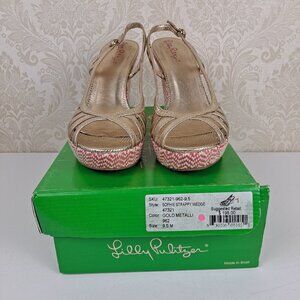 Lilly Pulitzer Size 9.5M Sophie Strappy Wedge Heel Gold Metallic In Original Box