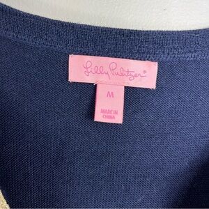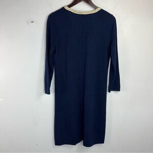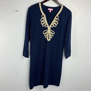 Lilly Pulitzer Size Medium Merino Wool Long Sleeve Navy Gold Sweater Dress X2