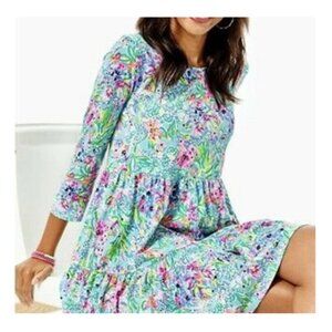 Lilly Pulitzer Geanna Swing Tiered Dress Amalfi Blue Alligator Isle Size XL