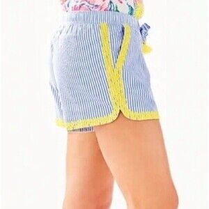Lilly Pulitzer Size XXS Katia Embroidered Shorts Yellow Blue Peri Swizzle Stripe