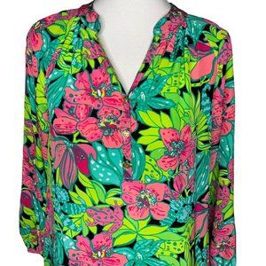 Lilly Pulitzer Skip On It Elza Top Blouse Size Medium 100% Silk Frogs Floral