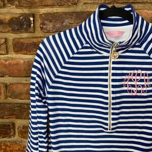 Lilly Pulitzer Skipper Popover Navy Blue Striped Half-Zip Sweatshirt Size XS