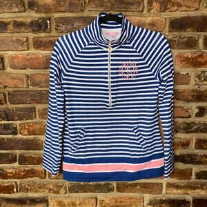 Lilly Pulitzer Skipper Popover Navy Blue Striped Half-Zip Sweatshirt Women's Size XS
