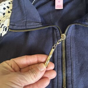 Lilly Pulitzer Skipper Popover Sweatshirt Half Zip Women’s XS Navy Blue Lace