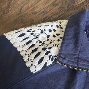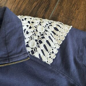 Lilly Pulitzer Skipper Popover Sweatshirt Half Zip Womens XS Navy Blue Lace Shoulder